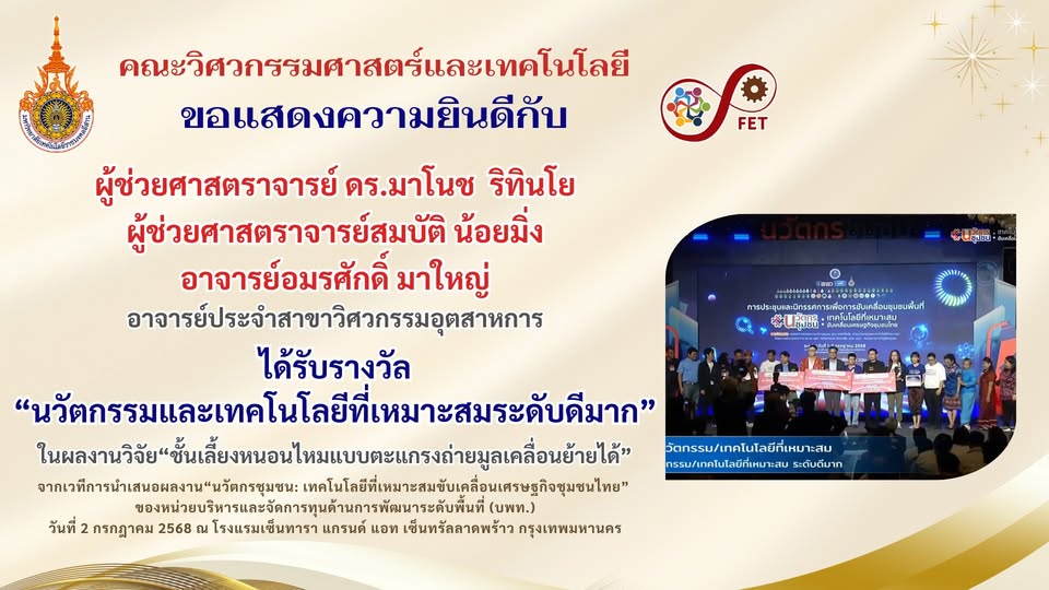 คณะวิศวกรรมศาสตร์และเทคโนโลยี ขอแสดงความยินดีกับ
