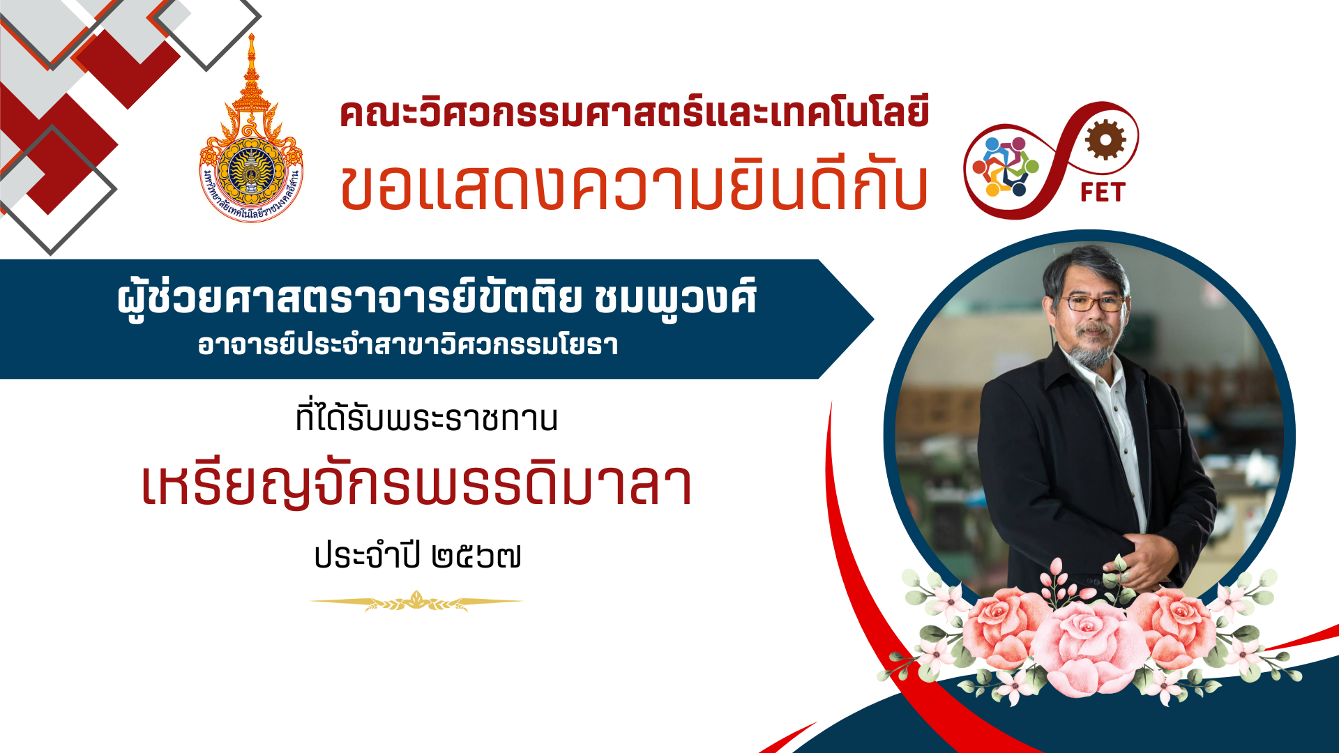 คณะวิศวกรรมศาสตร์และเทคโนโลยี ขอแสดงความยินดีกับ คณาจารย์ ที่ได้รับพระราชทานเครื่องราชอิสริยาภรณ์อันเป็นที่เชิดชูยิ่ง