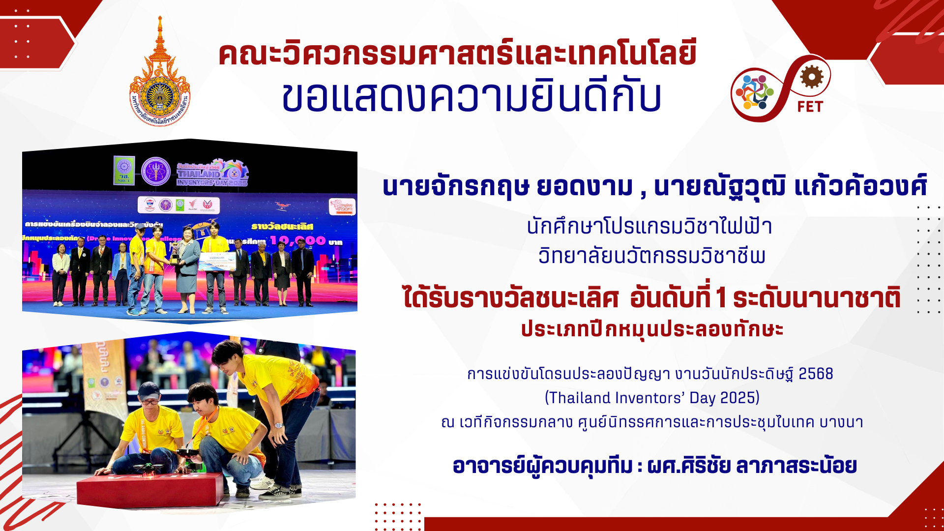 คณะวิศวกรรมศาสตร์และเทคโนโลยี ขอแสดงความยินดีกับ