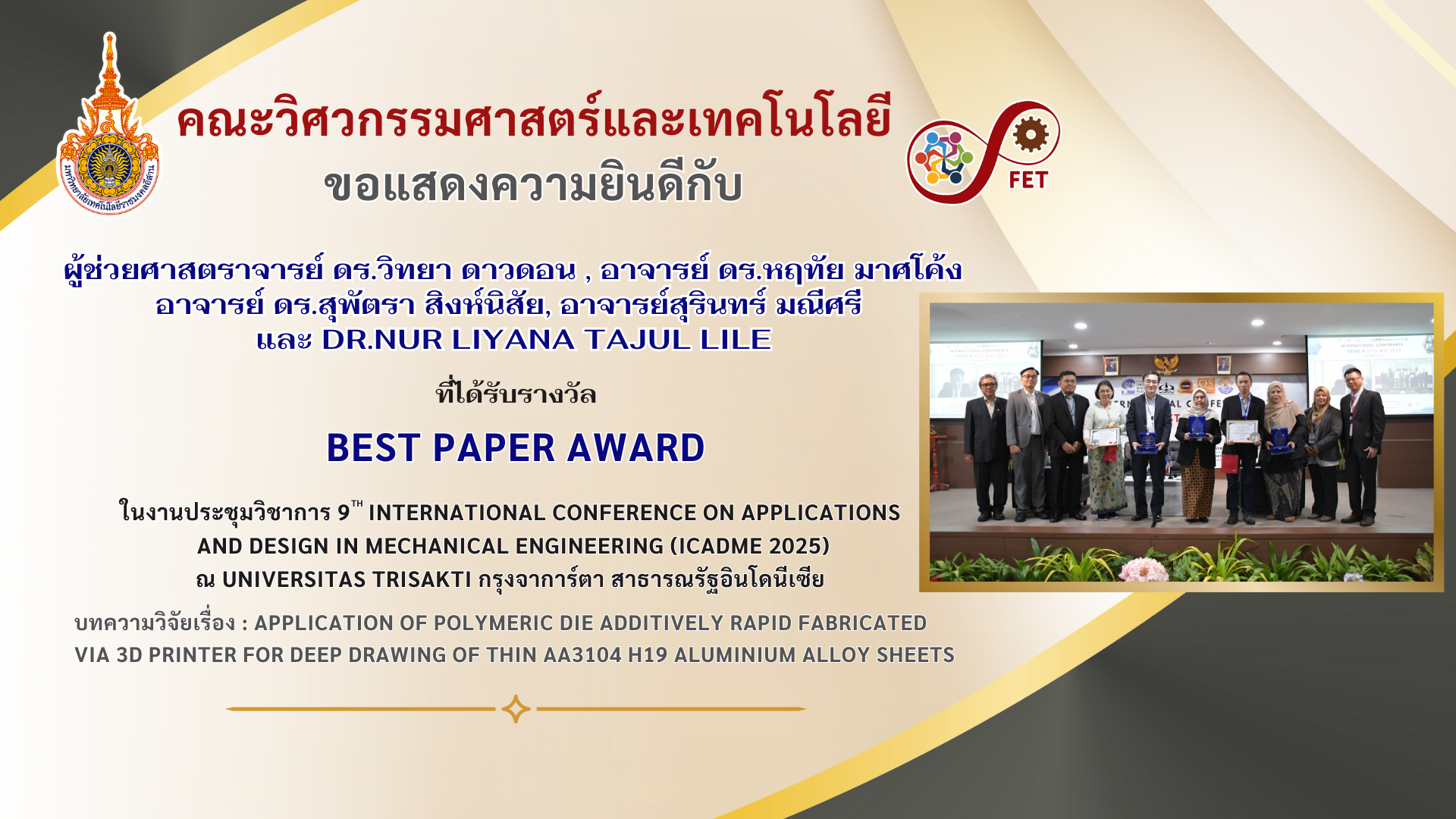 คณะวิศวกรรมศาสตร์และเทคโนโลยี ขอแสดงความยินดีกับ