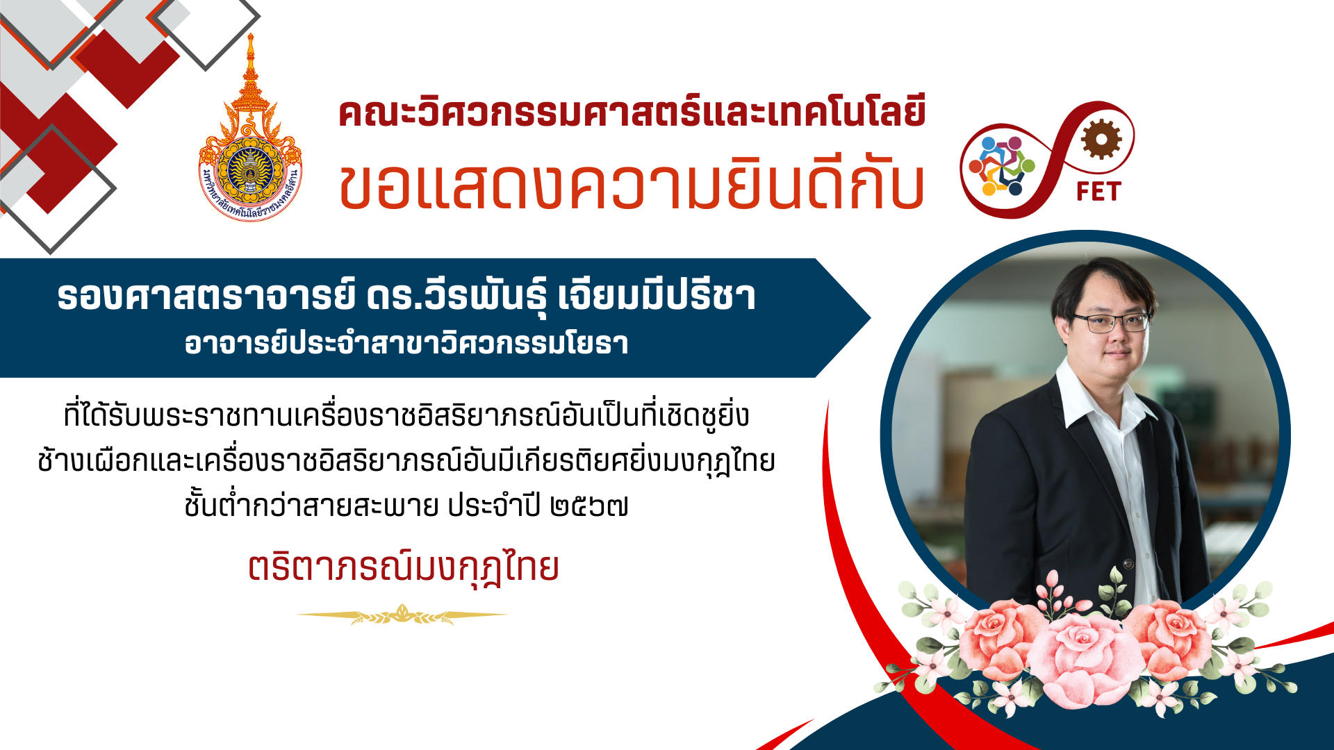 คณะวิศวกรรมศาสตร์และเทคโนโลยี ขอแสดงความยินดีกับ คณาจารย์ ที่ได้รับพระราชทานเครื่องราชอิสริยาภรณ์อันเป็นที่เชิดชูยิ่ง