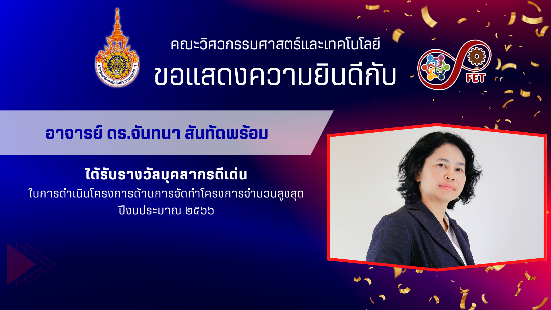 คณะวิศวกรรมศาสตร์และเทคโนโลยี ขอแสดงความยินดีกับ คณาจารย์และบุคลากรผู้ได้รับเกียรติบัตร ด้านการจัดทำโครงการจำนวนสูงสุด ปีงบประมาณ ๒๕๖๖ ,ด้านการจัดทำโครงการจำนวนสูงสุด ปีงบประมาณ ๒๕๖๖,ด้านการจัดทำโครงการที่มีมูลค่างบประมาณรวมสูงสุด ปีงบประมาณ ๒๕๖๖ และรางวัลสถาบันดีเด่นด้านนวัตกรรม