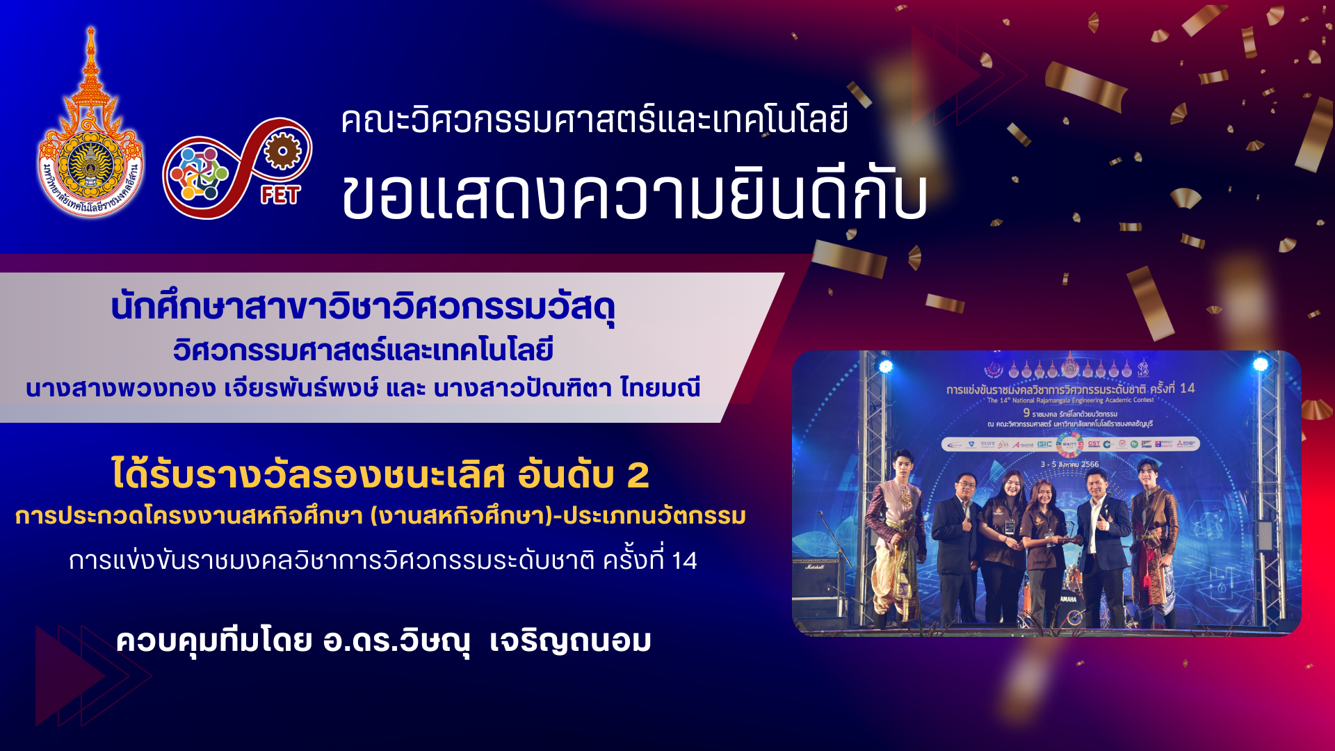 การประกวดโครงงานสหกิจศึกษา (งานสหกิจศึกษา)-ประเภทนวัตกรรม การแข่งขันราชมงคลวิชาการวิศวกรรมระดับชาติ ครั้งที่ 14