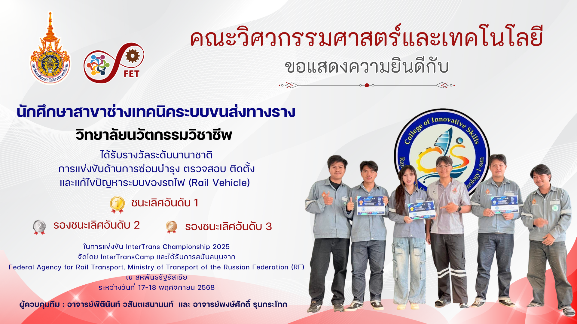 คณะวิศวกรรมศาสตร์และเทคโนโลยี ขอแสดงความยินดีกับ