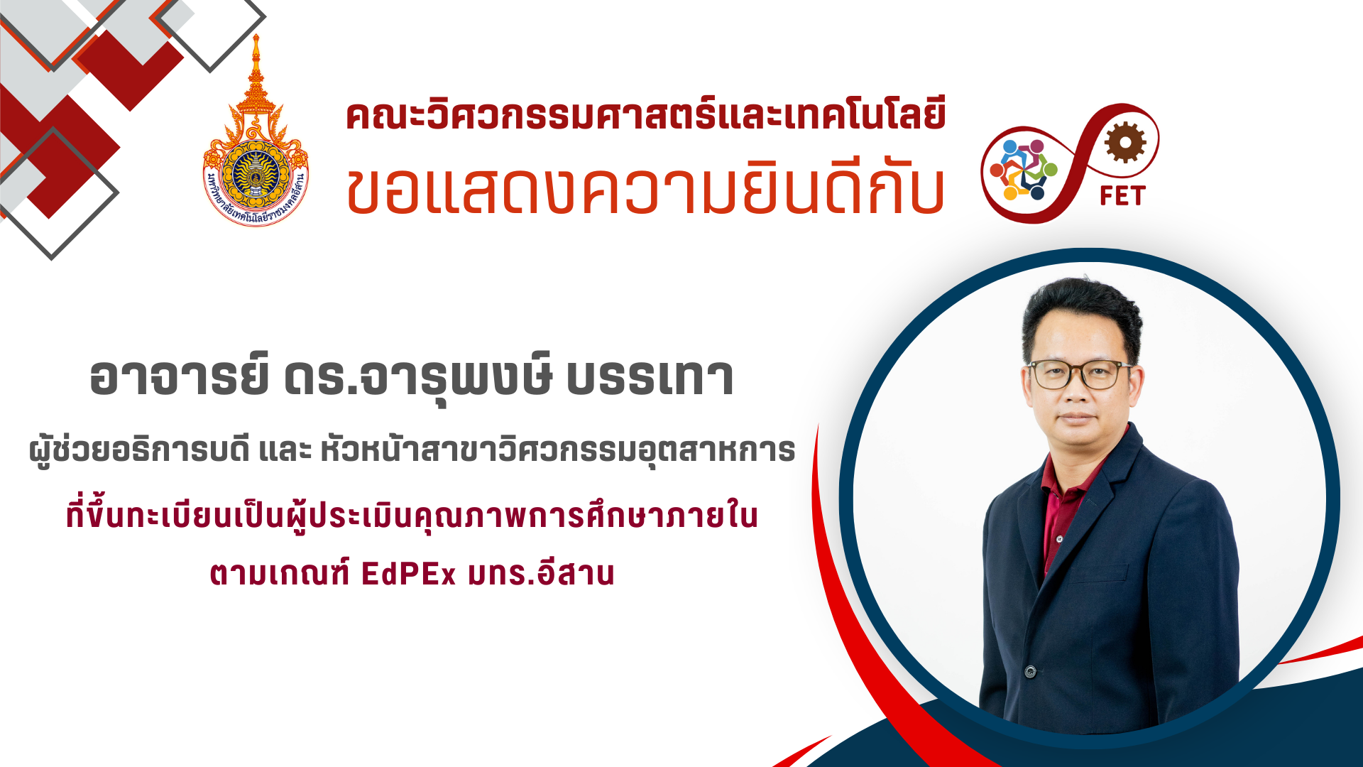 ตามเกณฑ์ EdPEx มทร.อีสาน ได้แก่ อาจารย์ ดร.จารุพงษ์ บรรเทา ผู้ช่วยอธิการบดี และ หัวหน้าสาขาวิศวกรรมอุตสาหการ