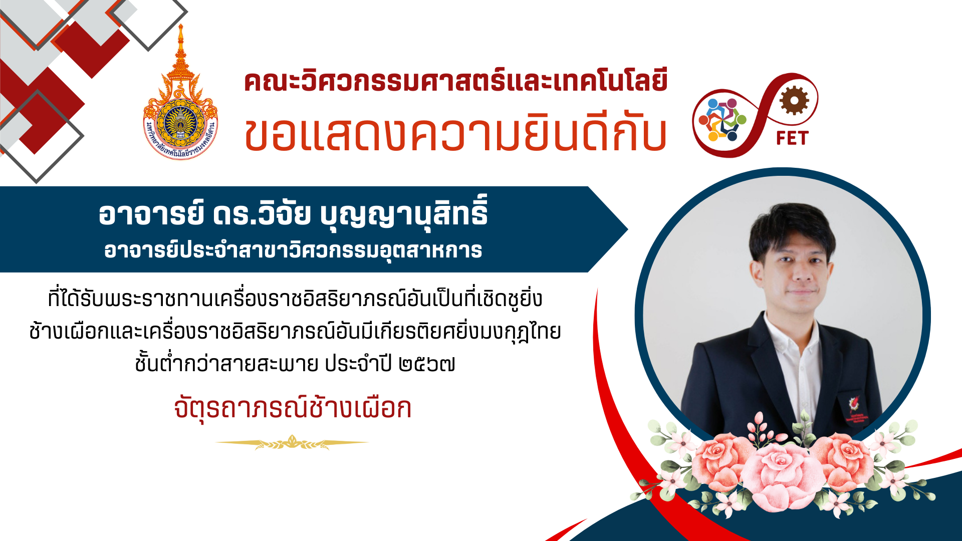 คณะวิศวกรรมศาสตร์และเทคโนโลยี ขอแสดงความยินดีกับ คณาจารย์ ที่ได้รับพระราชทานเครื่องราชอิสริยาภรณ์อันเป็นที่เชิดชูยิ่ง