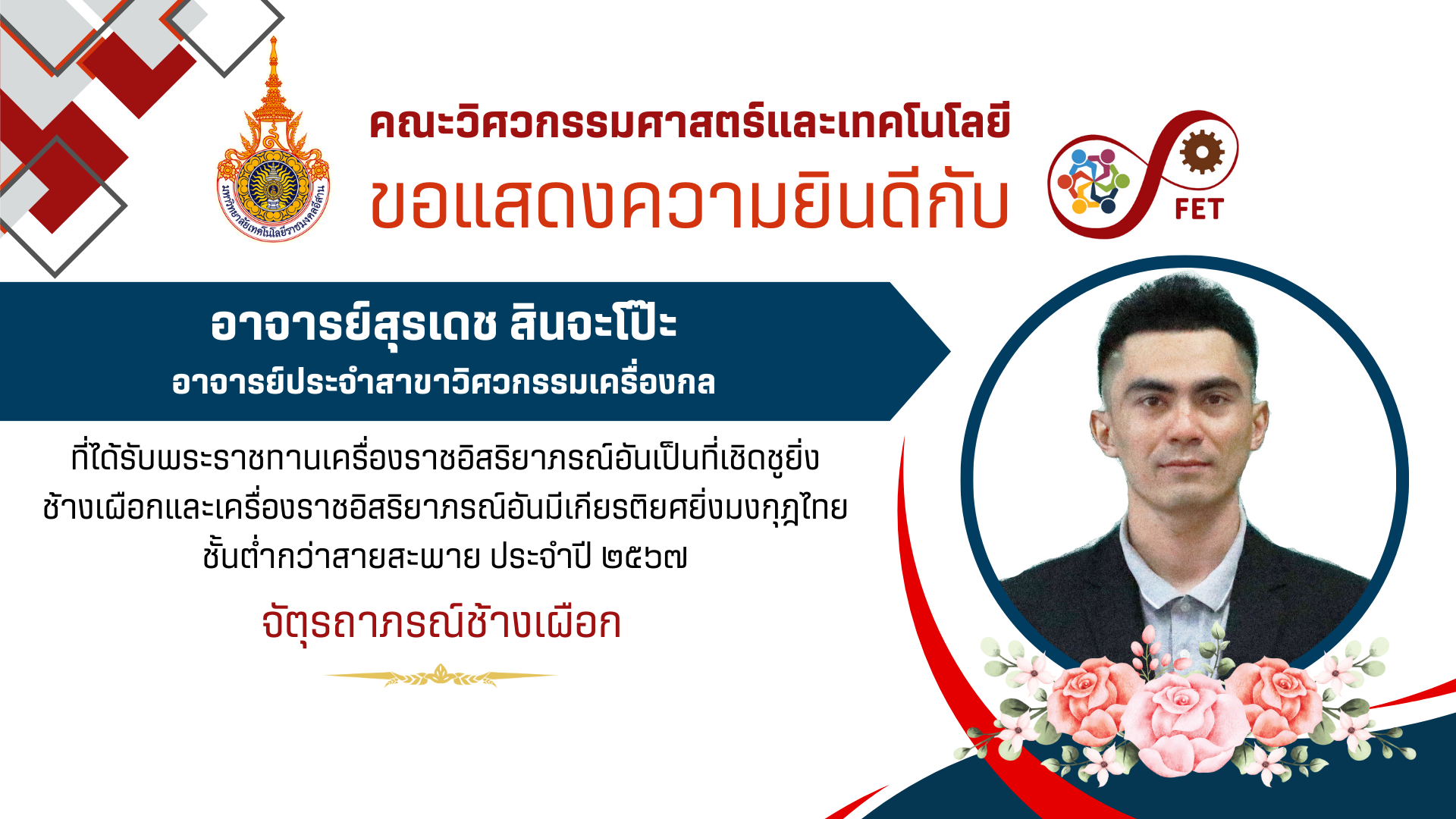 คณะวิศวกรรมศาสตร์และเทคโนโลยี ขอแสดงความยินดีกับ คณาจารย์ ที่ได้รับพระราชทานเครื่องราชอิสริยาภรณ์อันเป็นที่เชิดชูยิ่ง