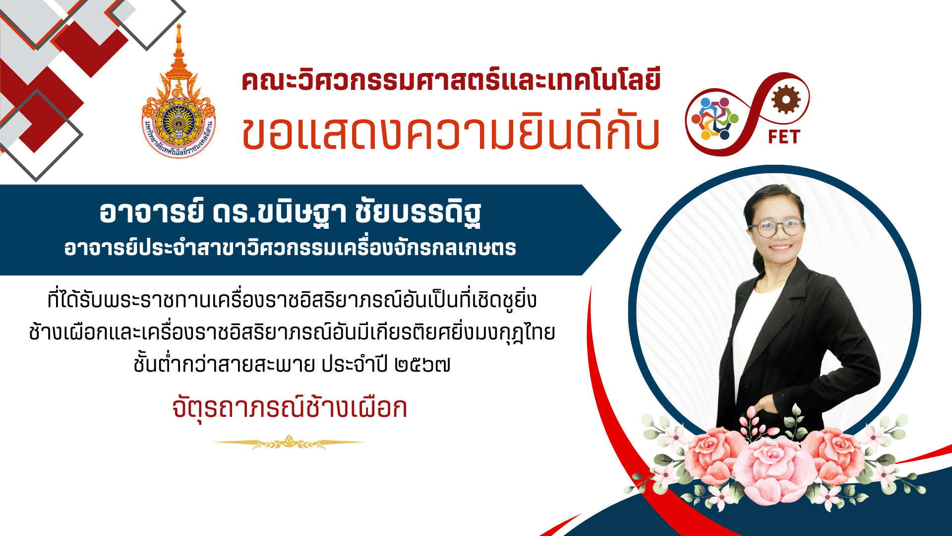 คณะวิศวกรรมศาสตร์และเทคโนโลยี ขอแสดงความยินดีกับ คณาจารย์ ที่ได้รับพระราชทานเครื่องราชอิสริยาภรณ์อันเป็นที่เชิดชูยิ่ง